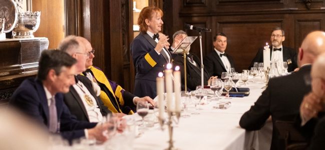 Guest of honour Lynda Atkins DL,  Honorary Air Commodore of 606 Squadron (our affiliated RAF Unit) and the National Chair of the Royal British Legion (RBL), thanked the Master and the Company on  behalf of the Guests for their hospitality and for a memorable event. She  congratulated the winners of the Military Merit Awards and emphasised the importance of support to our military organisations, particularly in the current geopolitical climate and acknowledged the commitment of all reservists, who give a considerable amount of their personal time to their reserve roles. She also thanked the Lightmongers for their support to the valuable work of the RBL noting, as an example of their work,  that the RBL is the largest employer of MacMillan nurses in the UK. Lynda closed her speech by proposing the toast to the Company –