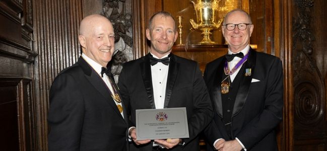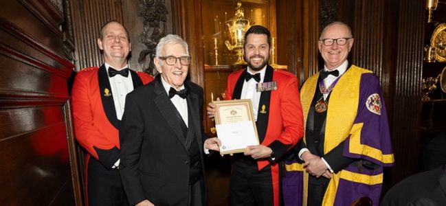 • Staff Sergeant Aaron Mitchell from our affiliated Army unit, 579 Field Squadron (Explosive Ordnance Disposal & Search), The supporting citation was presented by Major Duncan Wood RE, OC 479 Sqn RE and the Award was generously sponsored by Liveryman Bob Harris.