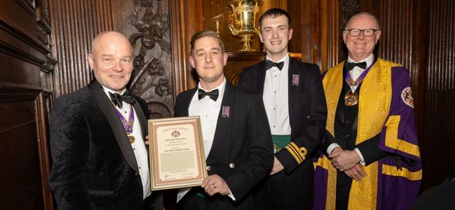 • Petty Officer, Christopher Walden from our affiliated Royal Navy ship HMS Queen Elizabeth. The supporting citation was presented by Lt Cdr Julian Caithness RN and the Award was generously sponsored by Past Master Jamie Berry.