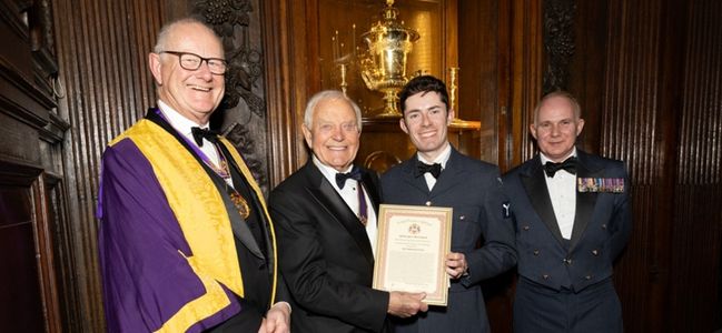 • AS1 Dubhaltach Reid from our affiliated RAF unit, 606 (Chiltern) Squadron RAF Benson. The supporting citation was presented by  Sqn Ldr John Burgess, OC 606 (Chiltern) Sqn and the Award was generously sponsored by Past Master Peter McVeigh.